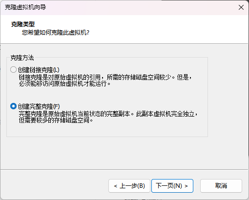 选择 创建完整克隆 。