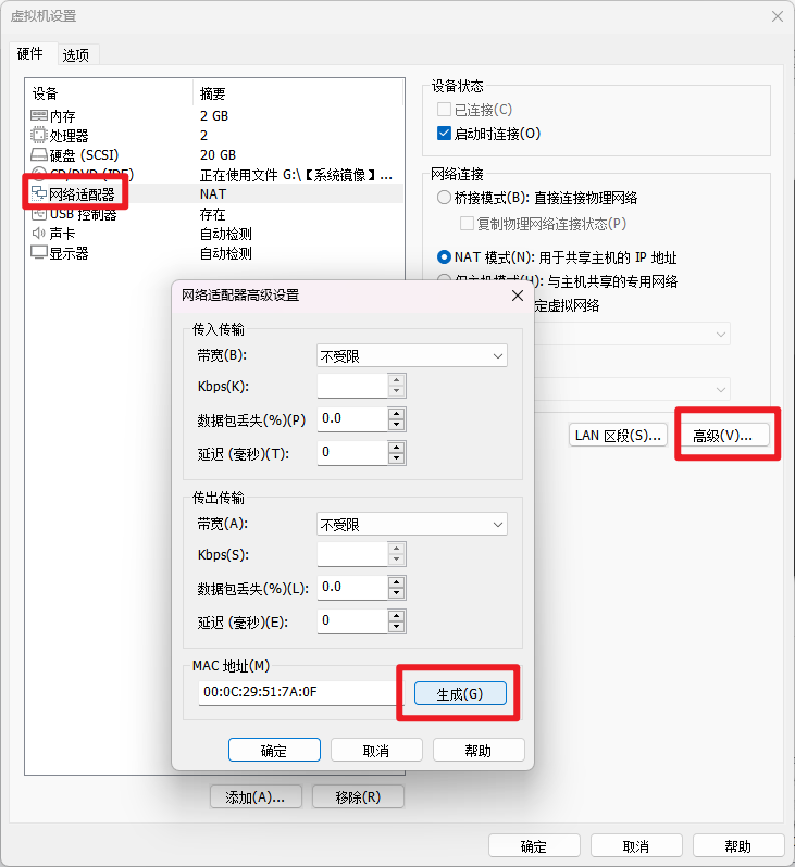 修改网卡 MAC 地址