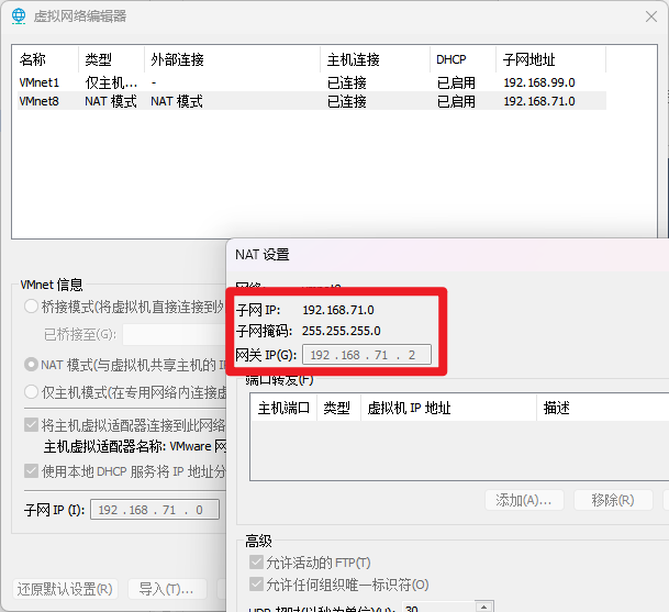 设置静态ip地址,这里要和虚拟网络管理器的NAT网络匹配才行。