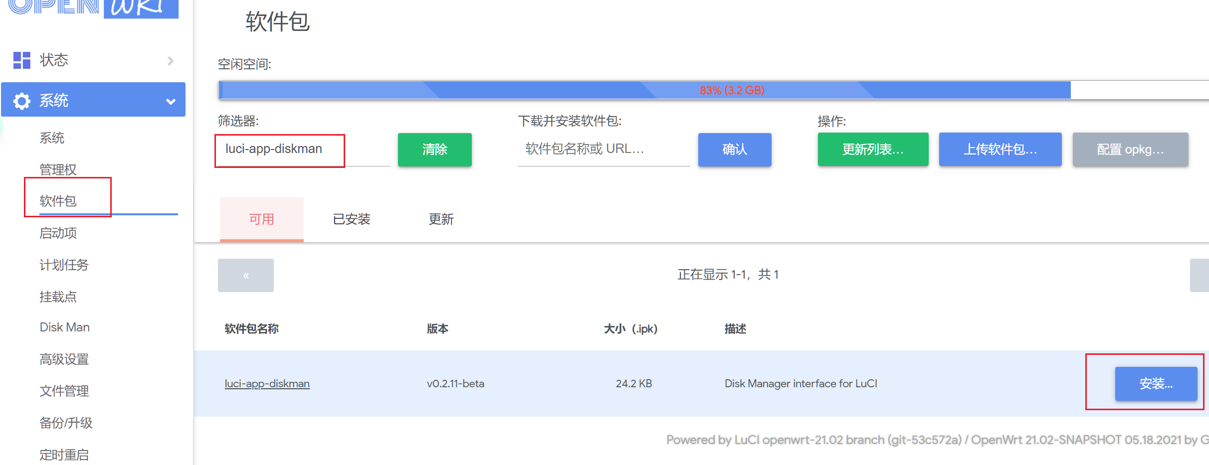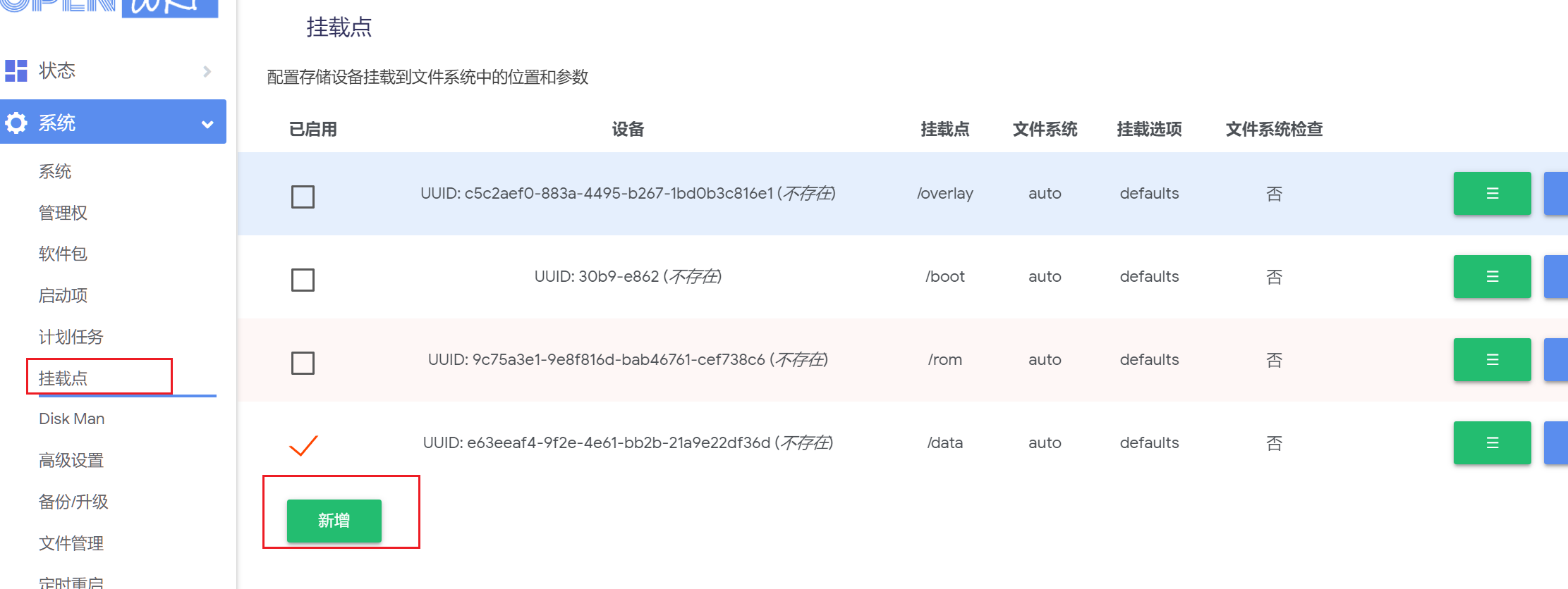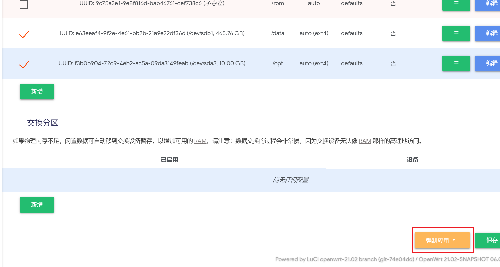 Openwrt扩展分区扩展分区先扩展新分区 虚拟机用户建议单独虚拟一个磁盘用于Openwrt存储数据,和固件所在的磁盘分开. 下一步前,如果已经有启用Docker,必须先停用,并卸载已挂载的/opt 否则会挂载失败 !!